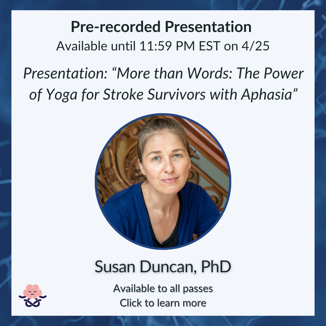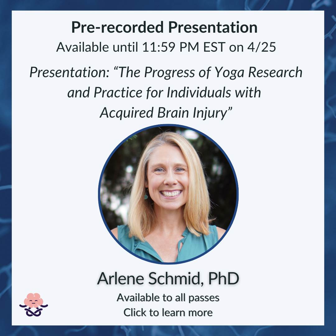 TBI (including concussion) is common, chronic, and complex. While yoga offers tremendous potential for improving healing and well-being after TBI, it’s not widely accessible for this population. To address this gap, LoveYourBrain has pioneered a suite of evidence-based yoga, mindfulness, and psychoeducation programs for people with TBI and caregivers in community, clinical, and online settings. This engaging workshop will describe the research, design, and implementation of LoveYourBrain Yoga, best practices for adapting yoga for TBI, and how to bridge the research to implementation gap.